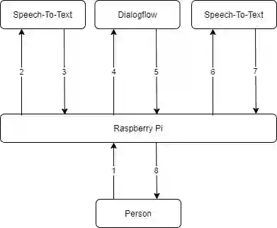 下图是用户与收音机对话、收音机确定如何响应之间的步骤,语音转文本和聊天机器人软件需要协同工作。在这个项目里,数据流的运行方式如下: