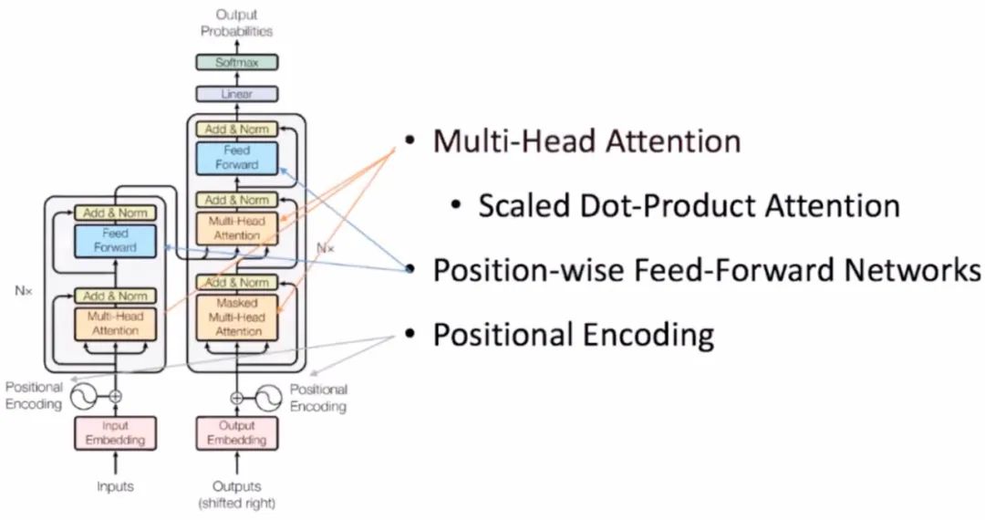 把encoder部分获得的所有输入的信息和decoder前半部分得到的输入信息,一同送到后面这个Multi-Head Attention中,它学习哪些输入信息和之前输出信息的特征更有利于解码,最后还经过了Add & Norm层、Feed Forward层和Add & Norm层,得到了decoder的最终输出。