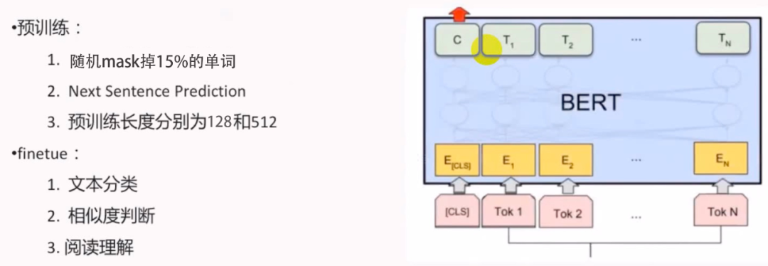 BERT预训练之后,会保存它的Embedding table和 层Transformer权重(BERT-BASE)或 层Transformer权重(BERT-LARGE)。使用预训练好的BERT模型可以对下游任务进行Fine-tuning,比如:文本分类、相似度判断、阅读理解等。