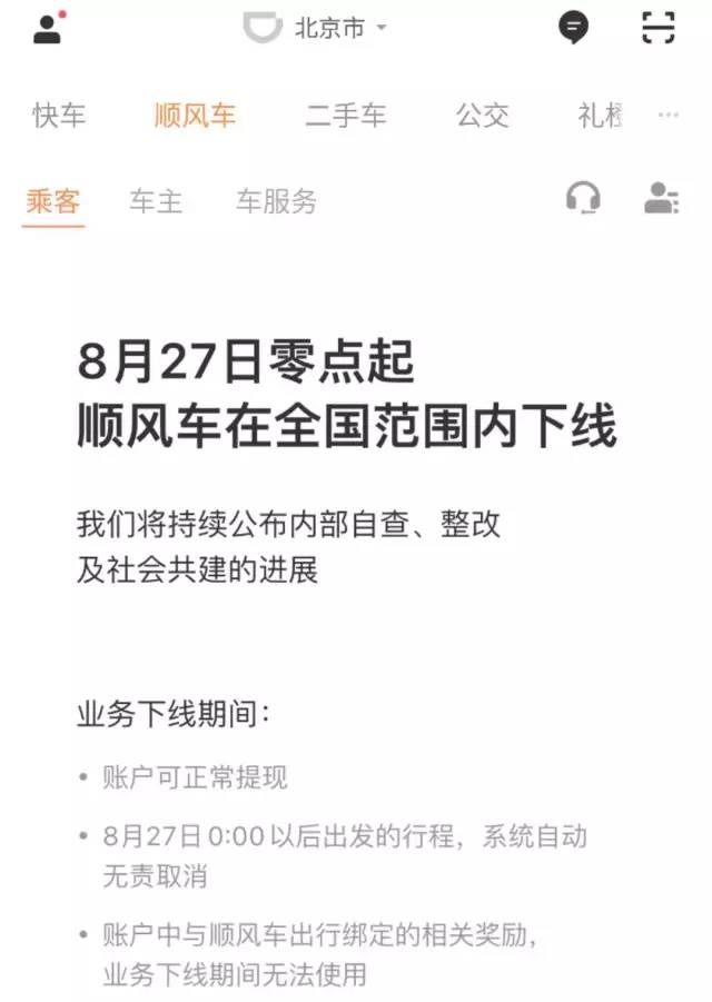 在乐清女孩遇害事件发生后,滴滴宣布从8月27日零时起在全国范围内下线顺风车业务,内部将重新评估其业务模式及产品逻辑。