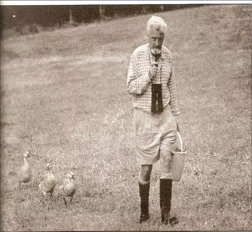 但是事情的转折来了,某一次洛伦茨无意地在一次实验中被刚出壳的幼鹅们第一眼看到,它们从此就紧跟着他直到长大。