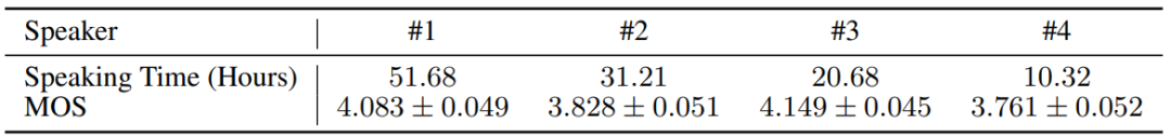 本研究训练数据集中具有最多数据的前四位说话者的平均意见得分(MOS)。