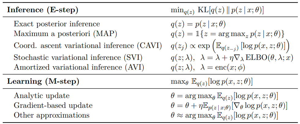 利用最大似然学习(maximum likelihood learning)训练潜变量模型的不同优化方法。