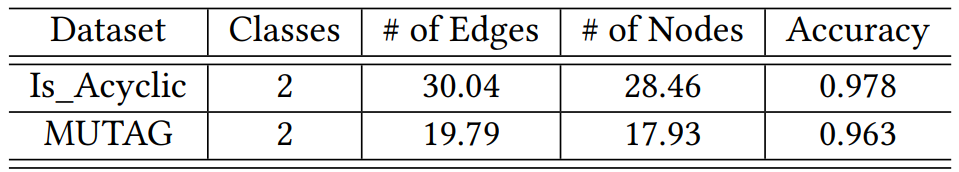 本研究使用的两个数据集:Is_Acyclic 和 MUTAG。需要注意,边和节点数量均为平均值。