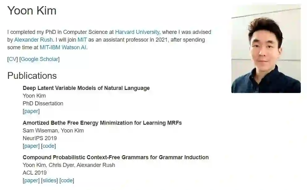 这篇博士论文的作者是哈佛大学计算机科学博士 Yoon Kim,他将于 2021 年入职 MIT 担任电子工程与计算机科学系助理教授