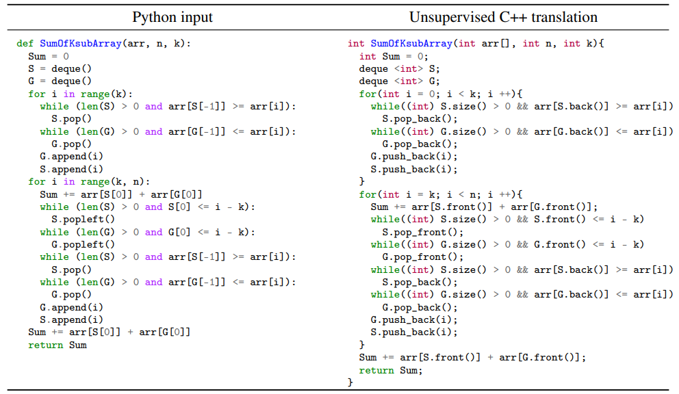 。TransCoder 基于 GitHub 开源项目中的源代码训练而成,能够以高准确率实现 C++、Java 和 Python 三种编程语言之间的函数转换。