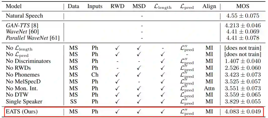 EATS 模型可在纯文本或者暂未对齐的原始音素输入序列上运行,并输出原始语音波形。