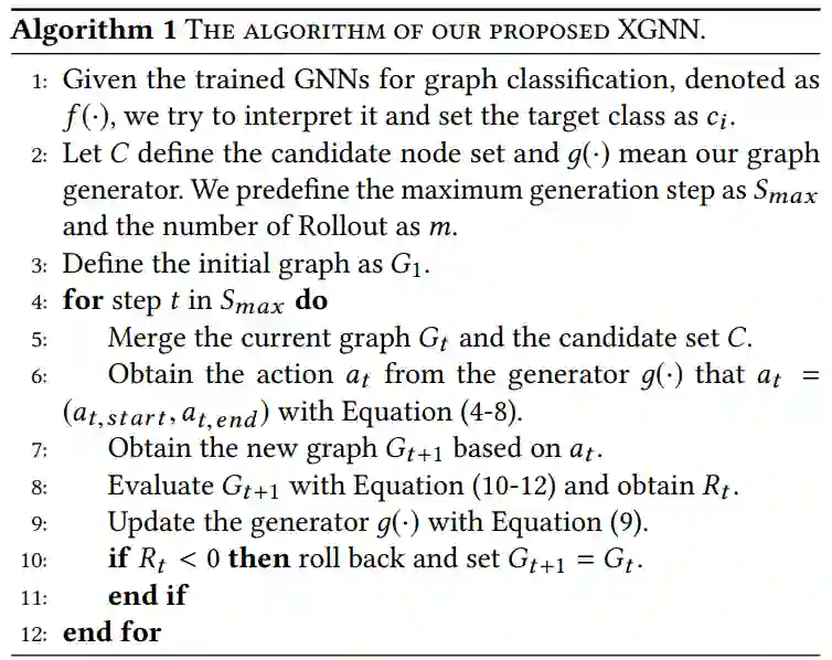 。特别地,他们提出通过训练图生成器来解释 GNN,使生成的图模式最大化模型的某种预测。研究者将图形生成表示为一个强化学习任务,其中对于每一步,图形生成器预测如何向当前图形中添加一条边。此外,他们还添加了一些图规则,使生成的图有效。