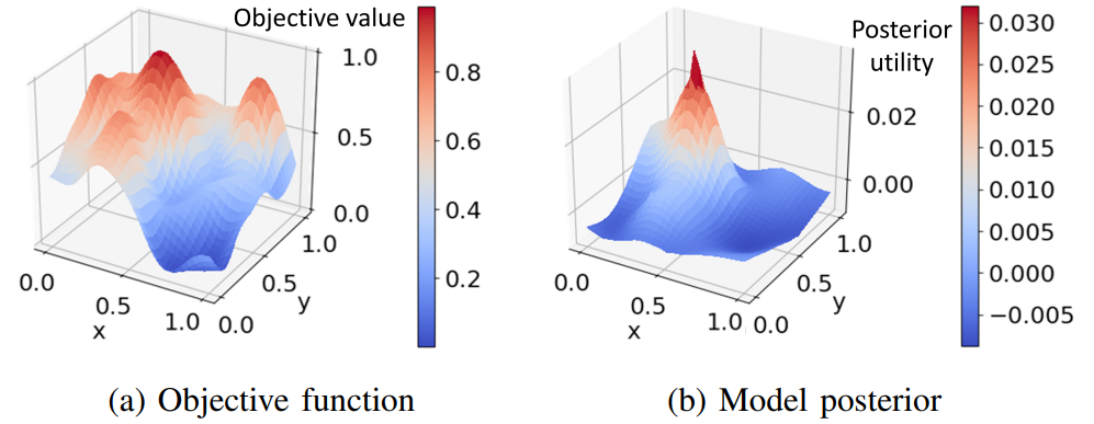 研究者在综合 2D 效用函数上测试 COSPAR 算法,每个效用函数都基于 30x30 网格上的高斯过程先验生成。这些实验评估了将 COSPAR 算法扩展至更高维度时的性能,以及合作反馈的优势。
