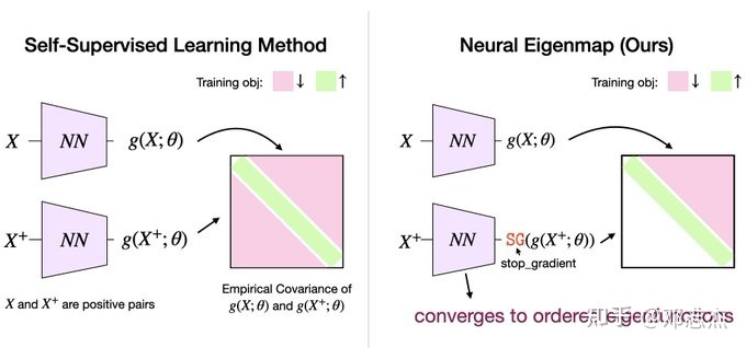 基于特定的 breaking-symmetry 手段(stop gradient 和仅优化上三角部分),Neural Eigenmaps 中神经网络的输出是结构化的,会逐元素收敛到核的 k 个主特征函数。