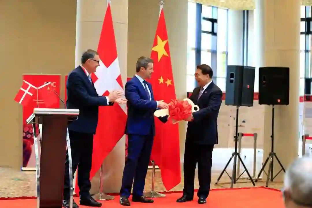 丹麦王储腓特烈(中)参加国科大“中丹中心”大楼落成启用仪式