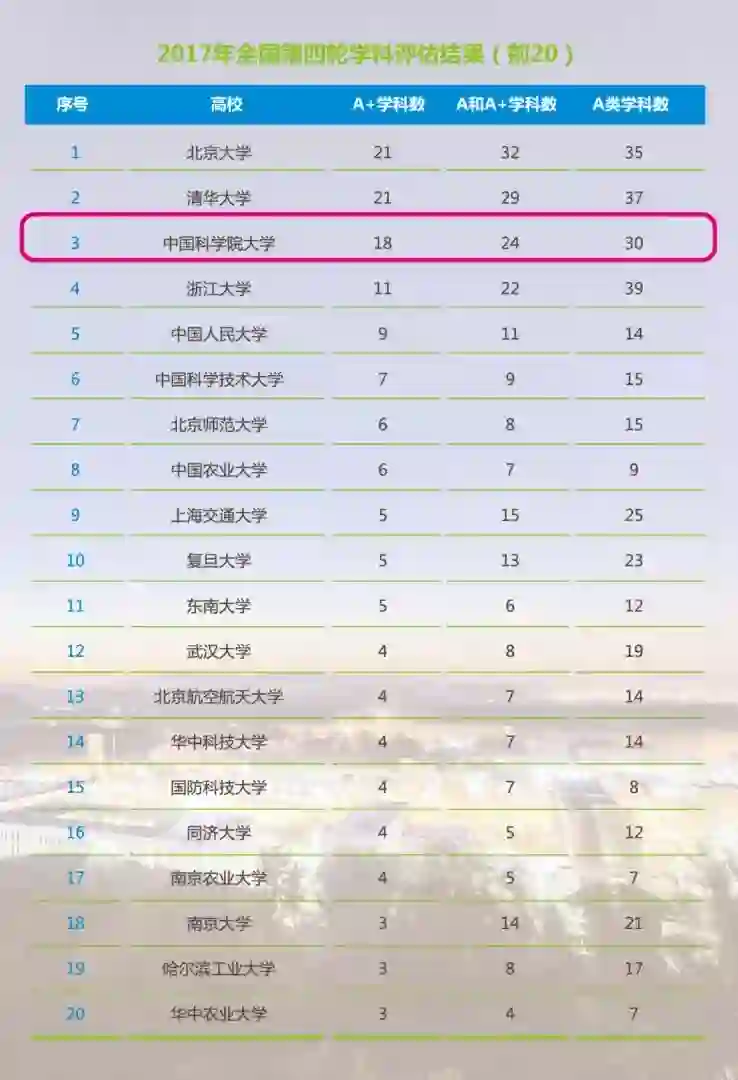 国科大30个学科被评为A类