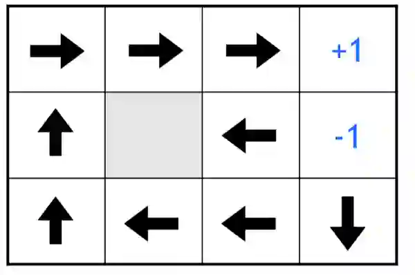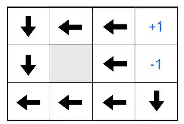 如果我们将每次移动的奖励调整为正,即机器人的每次移动都会增加奖励而不是惩罚的话,那么将会有一个显著的刺激使得机器人一直在 3x4 的空间里不断移动,而永远不会到达终点。