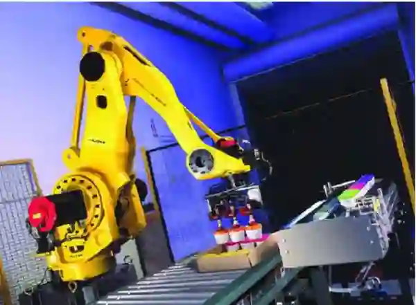 工业机器人:用机器人来包装。