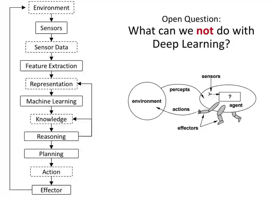 相较于机器学习,深度学习可以在更大的状态空间中对值进行估计。这使得我们能够对原始的传感器数据直接处理,更能胜任现实世界的应用,是一种可泛化的技术。