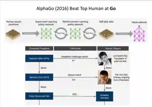 利用人类专家下棋方式,以一种监督的方式训练模型,RL 方法来击败人类专家。(有偏见的)观点:AlphaGo Zero(2017)在人工智能领域,取得的十年的成就: