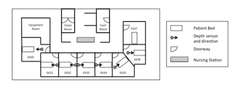 该研究在盐湖城 Intermountain LDS Hospital 的成人 ICU 病房展开,开展时间为 2017 年 8 月-10 月。研究参与者为进入 ICU 病房的病人和医院职工,病房装有计算机视觉深度传感器。