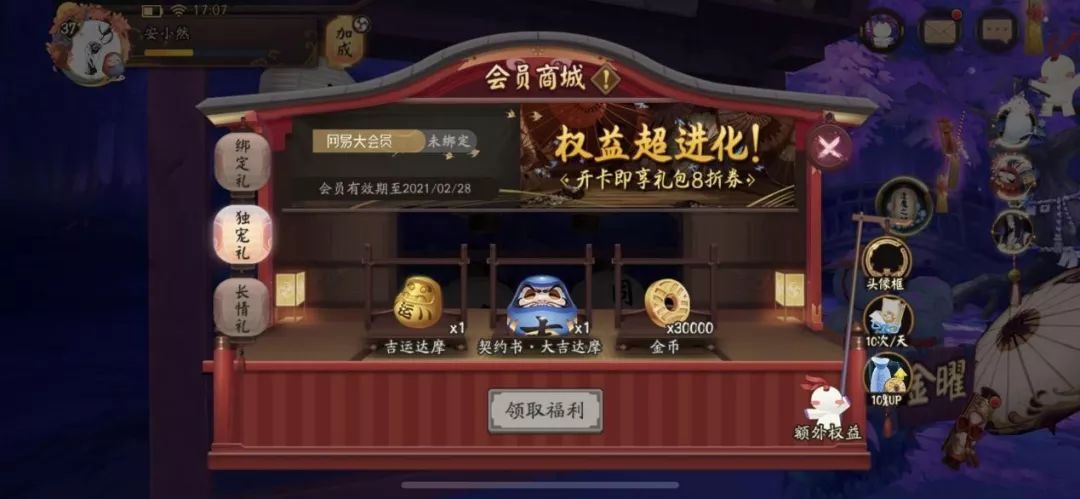 以《阴阳师》为例,网易官服玩家可以免费注册成为无门槛的网易游戏会员,并获得独有的等级头像框标识。如果玩家愿意付费成为覆盖网易旗下多款游戏特权的超级会员,则可以获得更多福利。