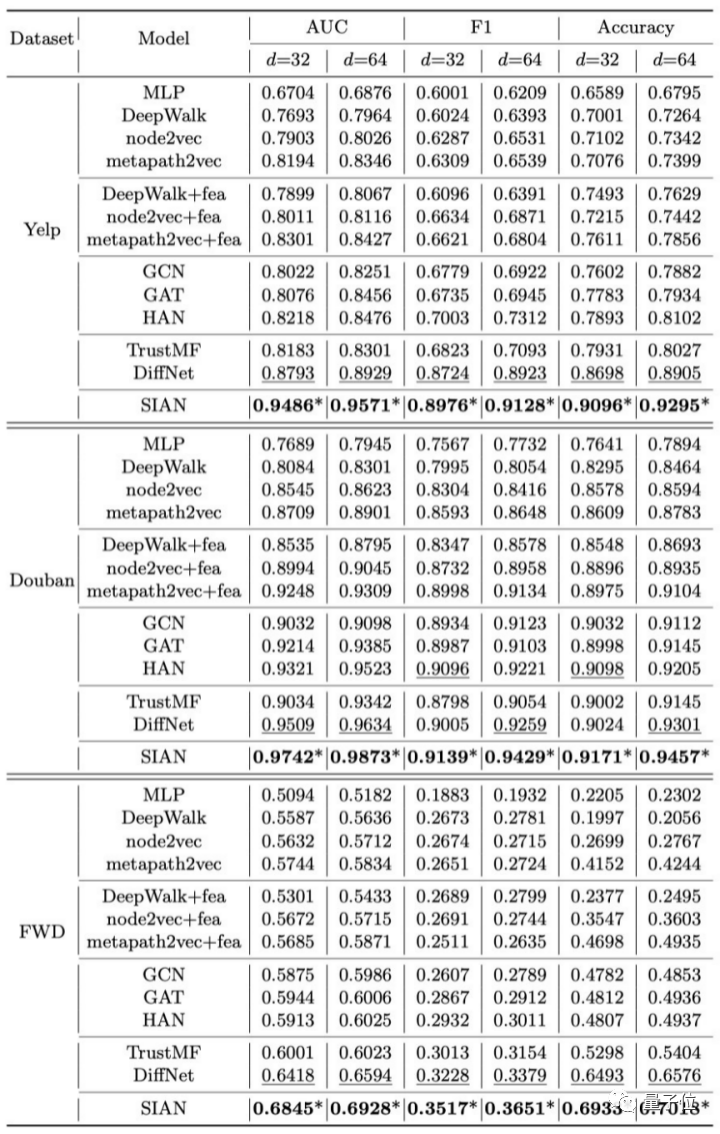 在两个公开数据集(Yelp和豆瓣)以及微信“看一看”数据(FWD),研究团队进行了评估和分析。