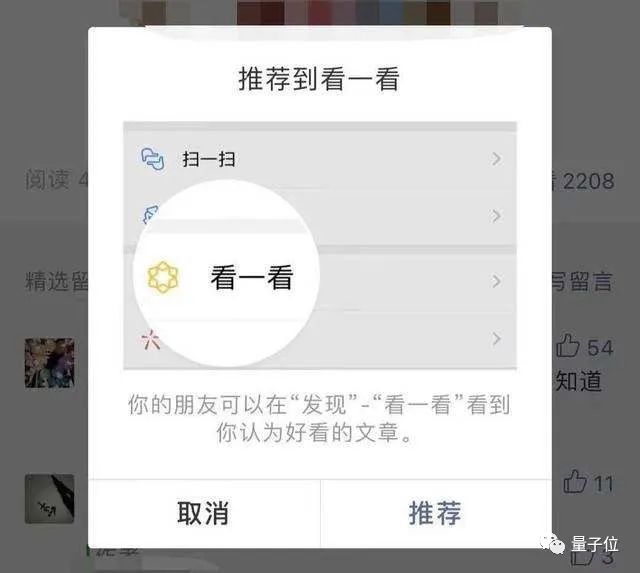 这样,“看一看”功能就变成了由你的好友“把关”的内容推荐平台,你能看到你的好友兴趣所在,同时能获得相关话题的优质信息。