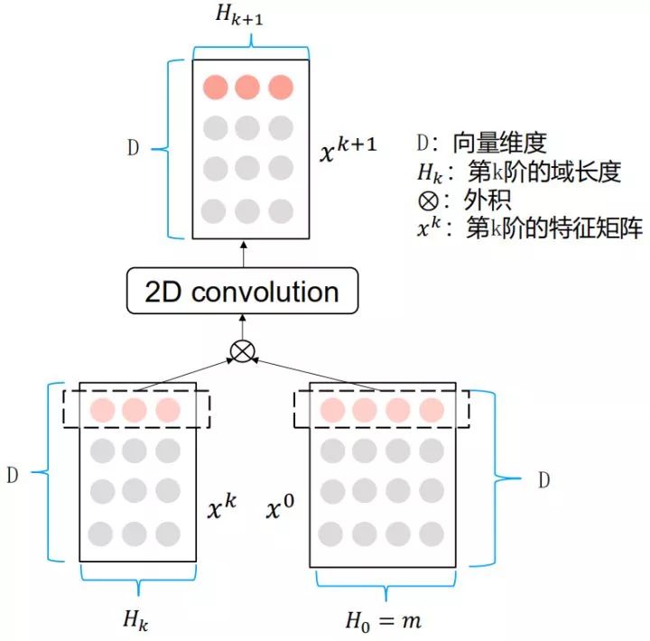 每个维度上的外积用于特征交互。张量  是进一步学习的中间结果。