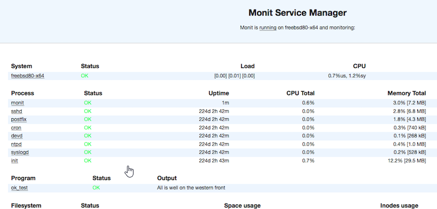 Monit 甚至为守护程序提供了一个不错的轻量级 Web 界面,让你一眼就能看到服务器发生了什么:
