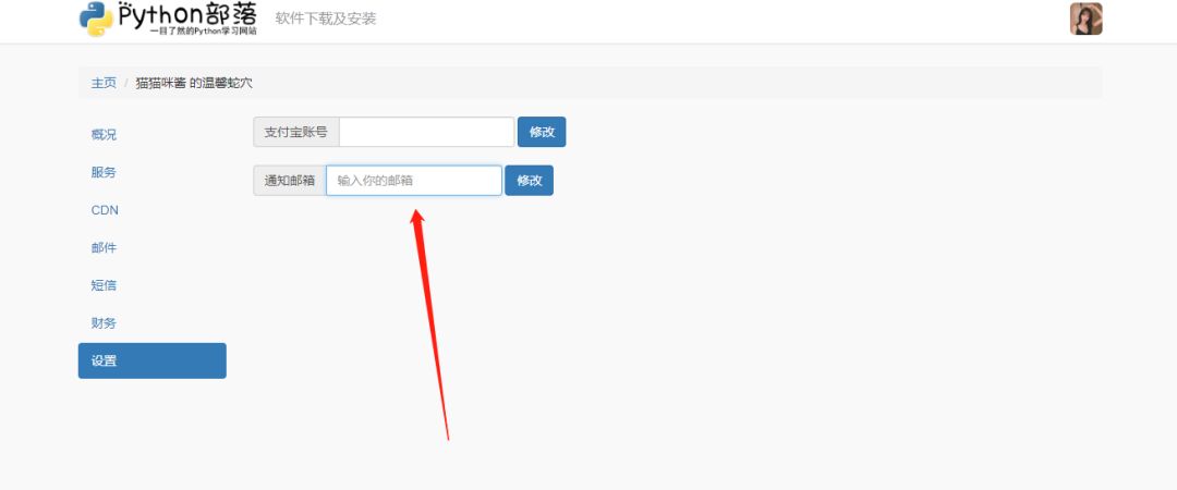 然后输入您的邮箱后,点击修改,邮箱即设置成功。