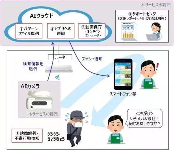 而近日,日本电信巨头宣布已研发出一款名为“AI Guardman”的新型人工智能安全摄像头,这款摄像头可以通过对人类动作意图的理解,在盗窃行为发生前就能准确预测,从而帮助商店识别偷窃行为,发现潜在的商店扒手。