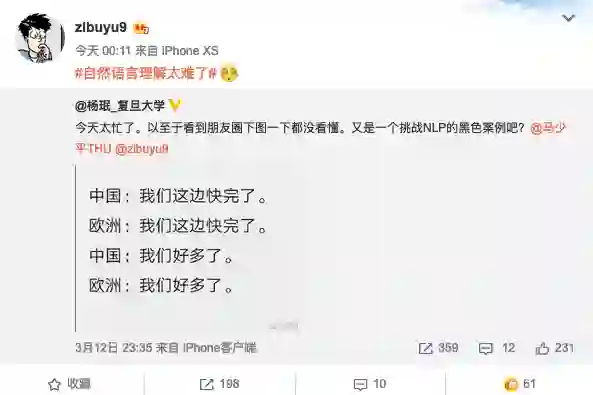 我国著名NLP学者刘群教授(目前担任华为诺亚方舟实验室语音语义首席科学家)便是这样一位真正热爱自然语言的学者,在微博中,他与清华刘知远副教授并为#自然语言理解太难了#的两位大咖。