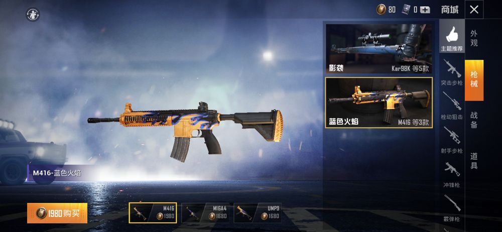 比如这把很“腾讯”的黄金枪,标价 1980 点券,而点券和人民币之间的比例是 10 : 1,也就是说,这把枪需要 198 人民币。