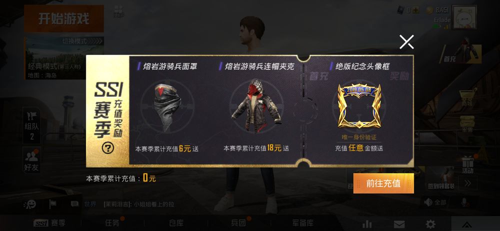 游戏主页,熟悉的“首充”入口如约而至, 最低消费 6 元能获得一个外观,以及纪念头像框。