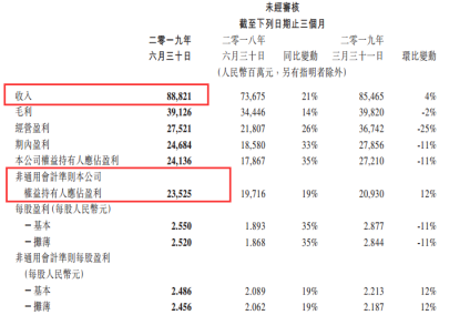 财报显示,腾讯第二季度营收888.21亿元,同比增长21%;非通用会计准则下净利235.25亿元,同比增长19%,远超投行预测的229亿元净利中位数。