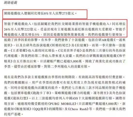 第一季腾讯只发布了一款游戏。在第二季度,腾讯发布了十款游戏,包括自研AR游戏《一起来捉妖》,以及自研角色扮演游戏《妖精的尾巴》及《拉结尔》,而第一季只发布一款游戏。《王者荣耀》收入录得同比增长。
