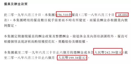 腾讯最新报表显示,2019年上半年薪酬成本是242.59亿元,员工数按5.631万人计算,平均半年薪资是43.08万元。