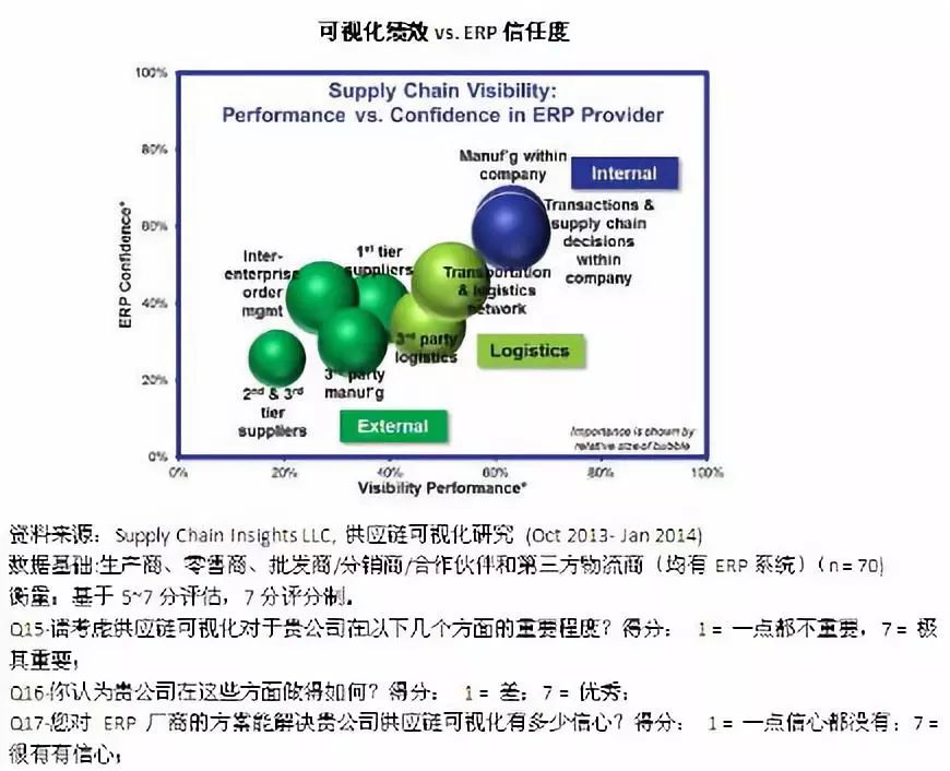 采用“基于B2B 商业网络的供应链可视化解决方案”目前可谓正当其时!为什么?随着B2B供应链商业网络解决方案的日渐成熟,领先企业已经逐步放弃了从ERP 厂商获取供应链可视化解决方案的打算。而在十年前,企业对于ERP厂商的承诺还是抱有高度的信任,读者从图2中可看出,这种信任现在已开始减弱。如图 2“企业对于ERP 厂商所提供的系统网络外延型供应链可视化的信任度”所示: