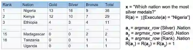 在《从稀疏和欠明确奖励中学习泛化》(Learning to Generalize from Sparse and Underspecified Rewards) 一文中,我们提出通过开发元奖励学习 (MeRL) 来解决欠明确奖励的问题,元奖励学习可以通过优化辅助奖励函数为智能体提供更精确的反馈。MeRL 与内存缓冲区中使用探索策略收集的成功轨迹相结合,以便从稀疏奖励中学习。此方法的有效性在语义分析中得到了证明,语义分析的目标是学习从自然语言到逻辑形式的映射(例如,将问题映射到结构化查询语言 (SQL) 程序中)。在论文中,我们研究了弱监督问题的设置,其目标是在没有任何形式的程序监督的情况下,从问答对中自动发现逻辑程序。例如,给出问题 “哪个国家赢得的银牌最多?” 和一个相关的 Wikipedia 表格,智能体需要生成一个类似 SQL 的程序,并由该程序给出正确答案(即 “尼日利亚”)。