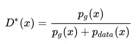 为了保证 V(D,G) 取得最大值,所以我们通常会训练迭代k次判别器,然后再迭代1次生成器(不过在实践当中发现,k 通常取 1 即可)。当生成器 G 固定时,我们可以对 V(D,G) 求导,求出最优判别器 D*(x):