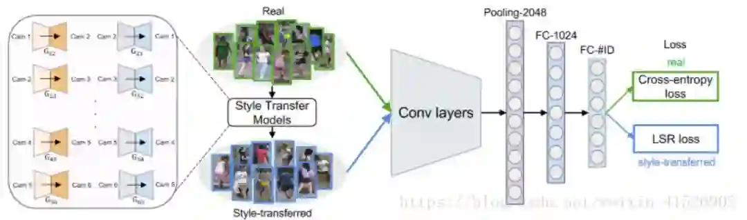 在行人重识别领域,有许多基于 CycleGAN 的迁移学习以进行数据增广的应用。行人重识别问题一个难点在于不同摄像头下拍摄的人物环境,角度差别非常大,导致存在较大的 Domain gap。