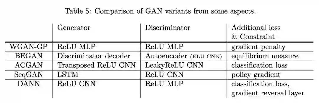 在第一、二部分我们讨论了 GAN 及其变体,第三部分讨论了 GAN 的应用。下表总结了比较有名的一些 GAN 的模型结构及其施加的额外约束。