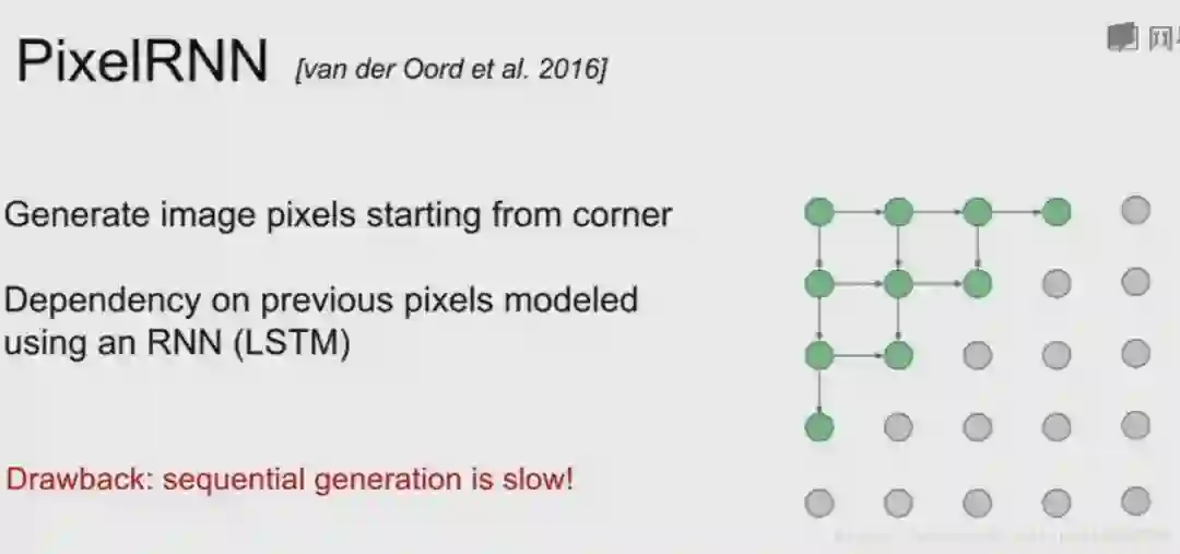 显然,不论是对于 pixelCNN 还是 pixelRNN,由于其像素值是一个个生成的,速度会很慢。语音领域大火的 WaveNet 就是一个典型的自回归模型。