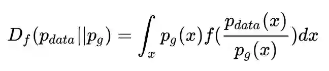 值得注意的是,散度这种度量方式不具备对称性,即 Df(Pdata||Pg) 和 Df(Pg||Pdata) 不相等。