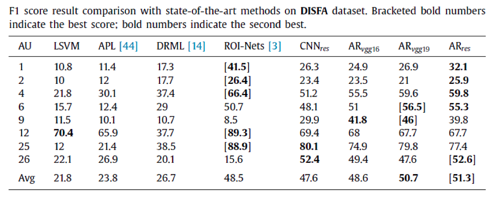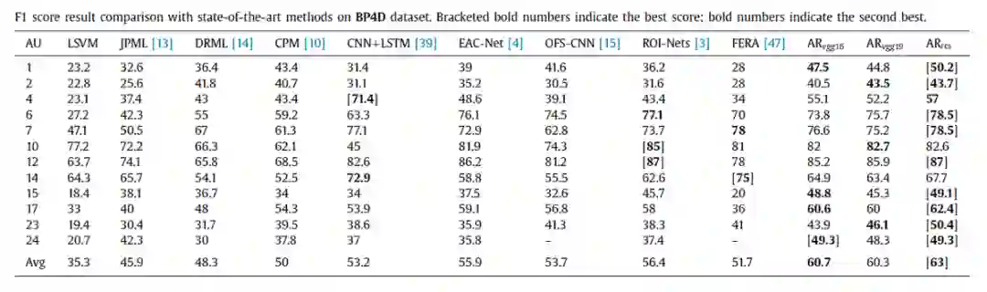 这篇论文率先利用先验知识和物体检测技术做Action Unit人脸表情识别,在BP4D和DISFA两个数据库达到了SOTA的实验结果:在F1 score这个benchmark下BP4D数据库达到了63%的最佳成绩。