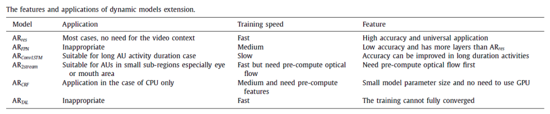 最后,作者总结了不同的AU R-CNN扩展及其适用范围: