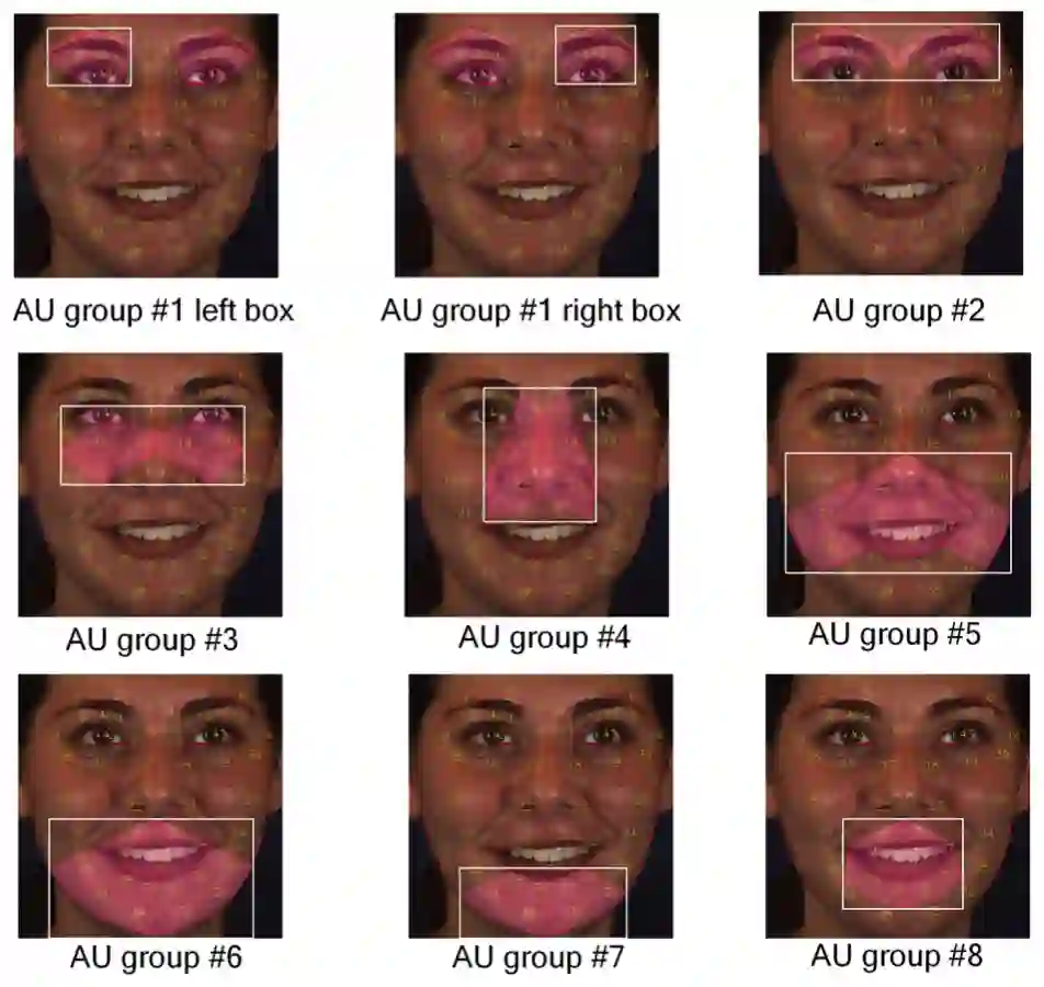 图4. AU group和其外包矩形,之后这些矩形被送入R-CNN的检测头