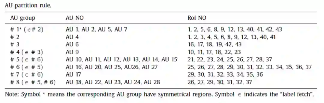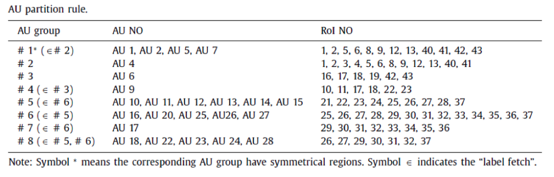 表1. AU partition rule(也即专家先验知识)