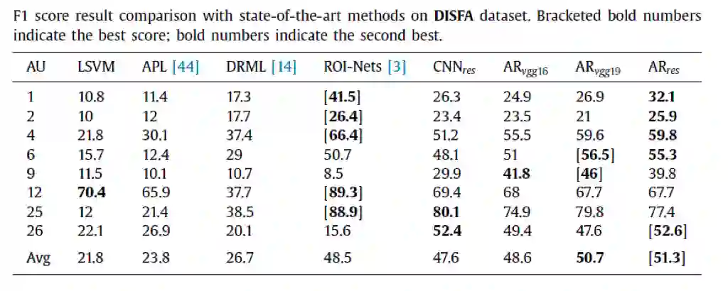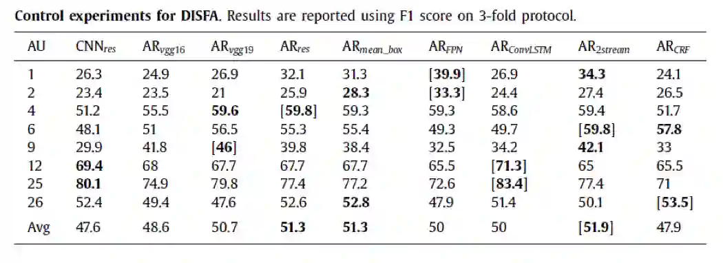 DISFA数据库都是连续的表情视频,实验结果如下:
