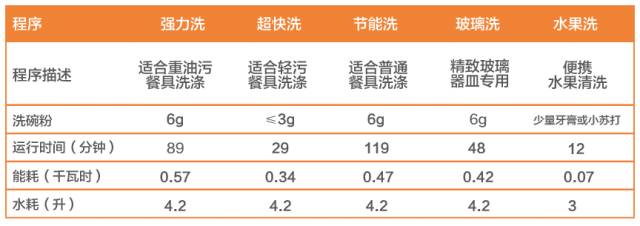 (程序对应洗涤餐具和耗电耗水量请看上图)