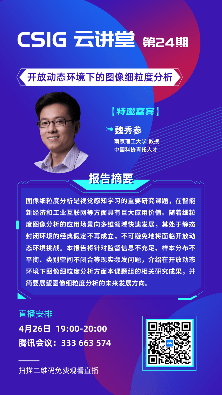 请添加会议官方微信:CSIG_1990,备注“云讲堂”获取入群邀请