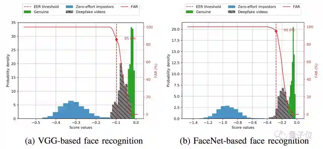 瑞士Idiap研究所的科学家,用GAN给300多段视频换脸,然后测试了两套先进的人脸识别系统:一个基于VGG,一个基于Facenet。