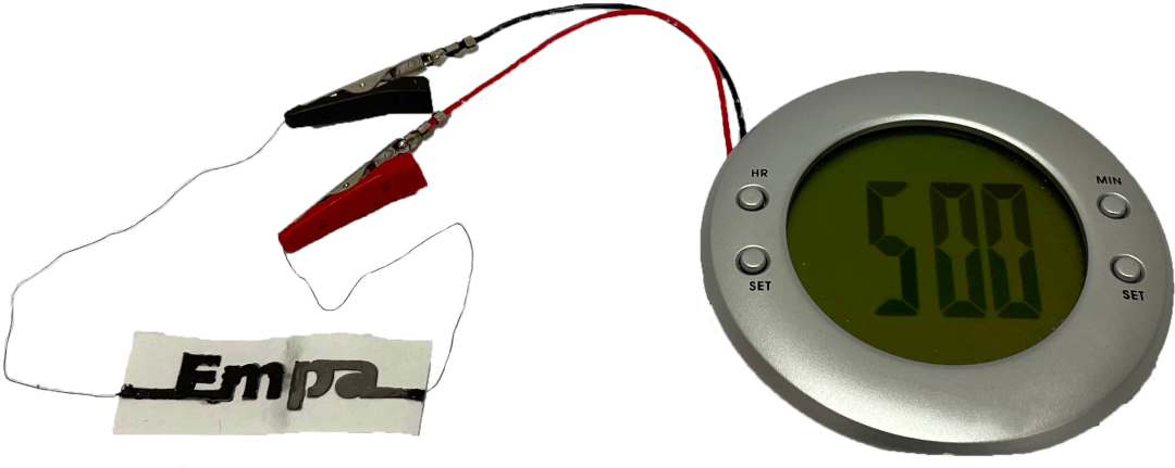 图|两单元纸电池正在驱动一个有 LED 的闹钟。(来源:研究团队)